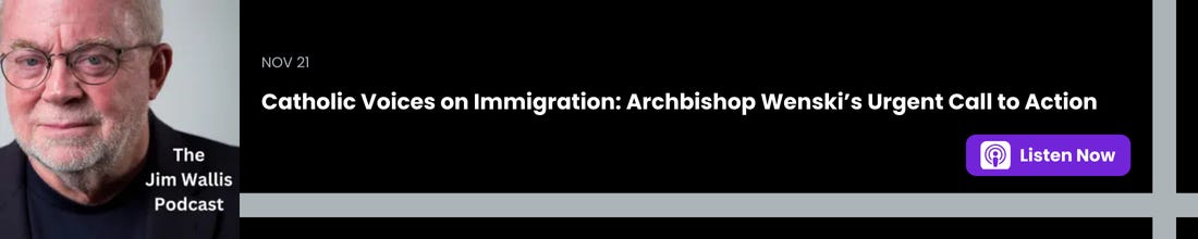 One of my students is from Evanston, Illinois, where local pastor, Rev. Michael Woolf, was recently arrested along with 21 other people outside an ICE facility. Now that the militarization has moved into North Carolina, hundreds of people are showing up at churches throughout the week in places like Charlotte to be trained in how to practically protect immigrants now under attack in their state. In my podcast this week, I talked with Archbishop Thomas Wenski of the Diocese of Miami. He told me about his priests and laypeople traveling to the immigrant detainee camp called Alligator Alcatraz in the Everglades. When he said some of them came on motorcycles, I said, “Wait a minute, an Archbishop on a motorcycle rode up to the ICE immigration center in the Everglades?” He smiled and said, “That was me…it helps clear my head.” Faith leaders like Rev. Woolf and Archbishop Wenski are leading us in unified opposition to unlawful and cruel mass deportations.
